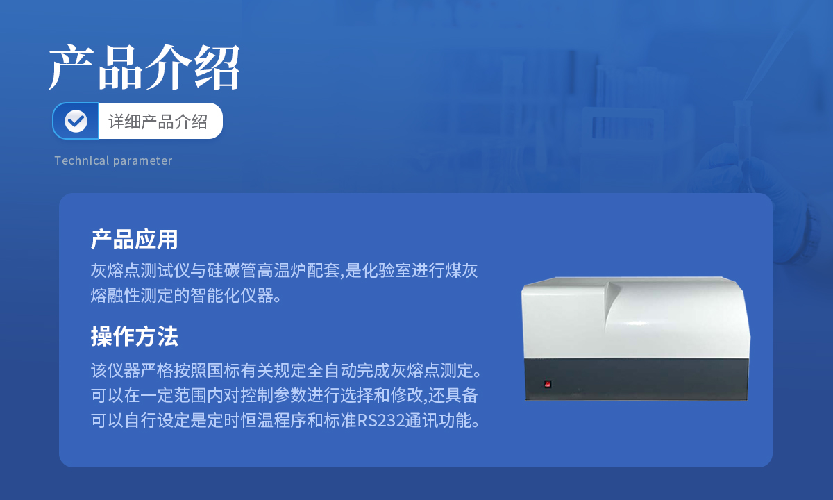 灰熔點測試儀與硅碳管高溫爐配套,是化驗室進行煤灰熔融性測定的智能化儀器.該儀器嚴格按照國標有關(guān)規(guī)定全自動完成灰熔點測定.可以在一定范圍內(nèi)對控制參數(shù)進行選擇和修改,還具備可以自行設(shè)定是定時恒溫程序和標準RS232通訊功能.