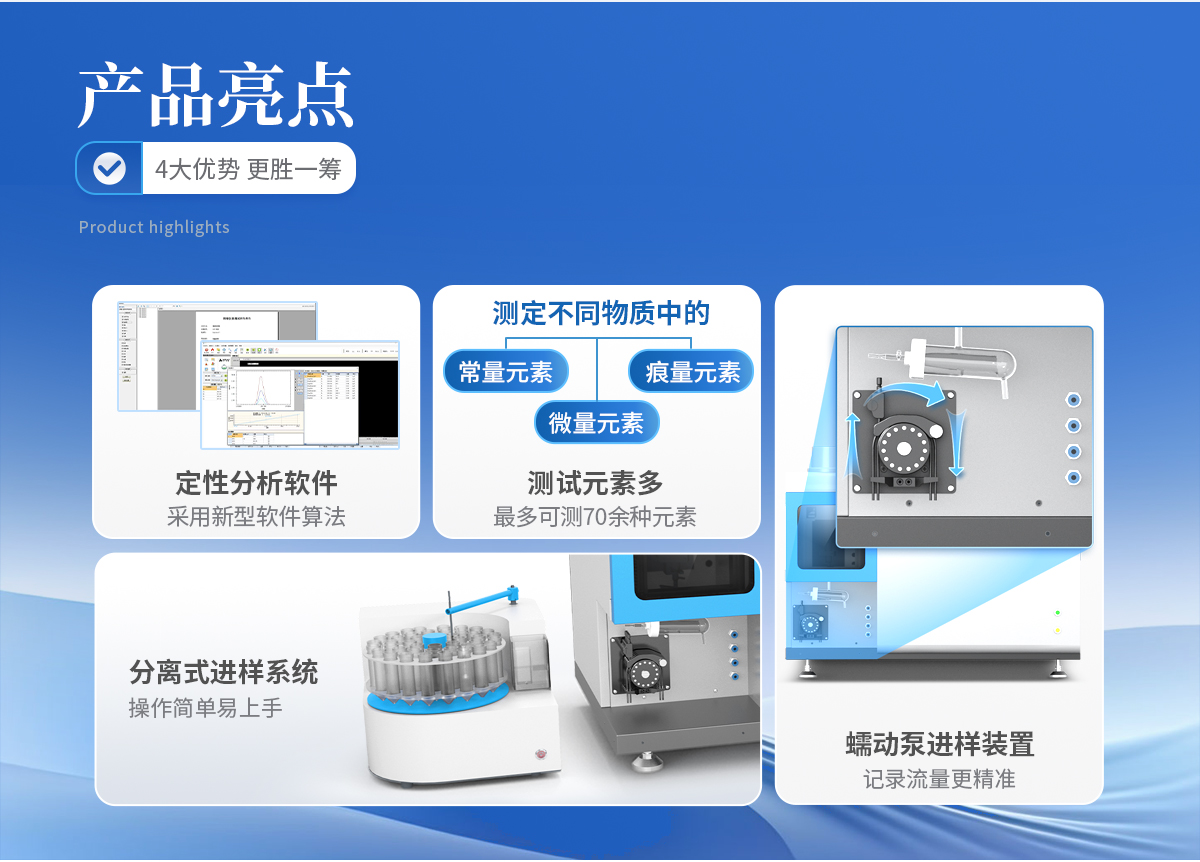 1、進(jìn)樣系統(tǒng) 1.1 加長(zhǎng)型霧室,保證高靈敏度的情況下有效降低背景噪聲,低記憶效應(yīng)。 1.2 **同心圓霧化器,霧化效率高、重復(fù)性好,記憶效應(yīng)弱,可直接自吸進(jìn)樣。 1.3 快速拆卸式炬管,搭配自主研發(fā)的炬管工裝,可一秒實(shí)現(xiàn)炬管的準(zhǔn)確定位,減少因更換 炬管帶來的位置誤差影響測(cè)試性能。 1.4 蠕動(dòng)泵為 5 通道 16 滾軸全自動(dòng)設(shè)計(jì),蠕動(dòng)泵轉(zhuǎn)速連續(xù)可調(diào)。確保穩(wěn)定進(jìn)樣的同時(shí),可 支持進(jìn)樣、排廢、在線內(nèi)標(biāo)和其他試劑進(jìn)樣管(氫化物發(fā)生器)同時(shí)運(yùn)行。 1.5 分腔體式進(jìn)樣系統(tǒng),炬管和霧室在不同的空間內(nèi),減少炬管高溫對(duì)霧化的影響,也可以 直接觀察樣品的進(jìn)行,便于實(shí)時(shí)排除異常情況。 1.6 多種類型的霧化器、霧室及炬管可選,可實(shí)現(xiàn)有機(jī)、高鹽、高靈敏、耐 HF 酸等不同進(jìn) 樣需求,方便更換與維護(hù)。 1.7 集成氣路全自動(dòng)控制,采用精密質(zhì)量流量控制器控制多路氣體流量,精度 0.01L/min。 1.8 缺氣氣保護(hù)功能,儀器在氣源耗盡的情況下自動(dòng)熄火,并通過嗡鳴器實(shí)時(shí)發(fā)出報(bào)警聲音。 1.9 火焰視頻監(jiān)測(cè),儀器配置了靈敏度高的火焰?zhèn)鞲邢到y(tǒng),以及可視化視頻監(jiān)測(cè)攝像頭, 可以實(shí)時(shí)觀測(cè)燃燒室火焰狀態(tài),并在熄火時(shí)自動(dòng)關(guān)閉射頻電源,保護(hù)儀器重要部件。 1.10 可視化的儀器運(yùn)行狀態(tài)監(jiān)控模塊,可對(duì)儀器各組成部件的運(yùn)行情況進(jìn)行監(jiān)測(cè),判斷故 障原因,便于各部件的正常運(yùn)行。