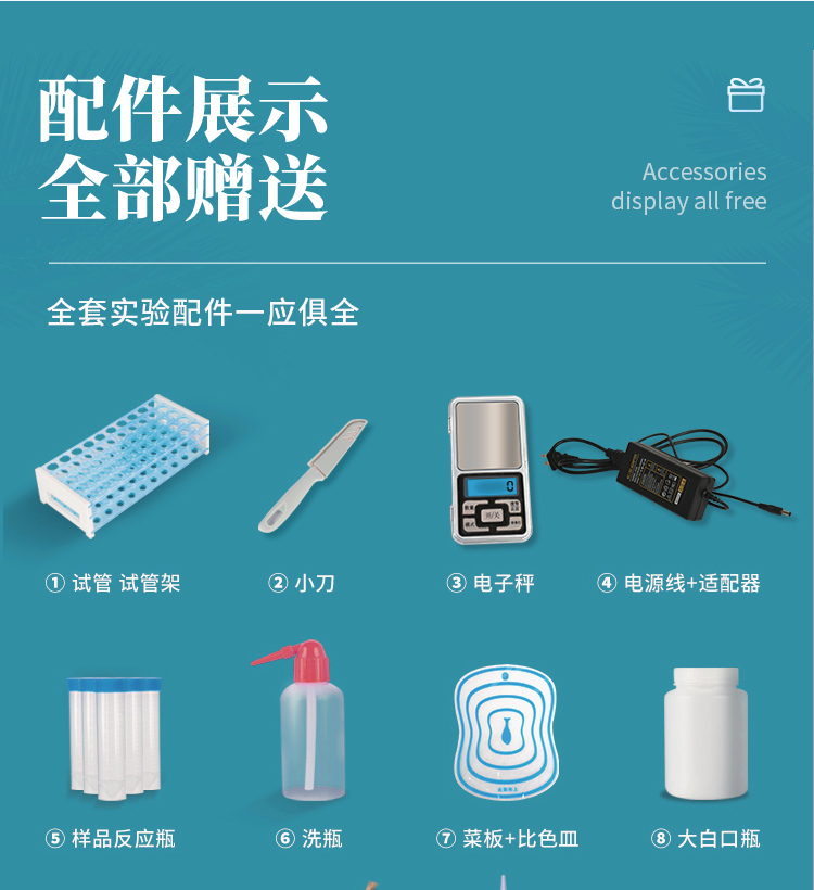 檢測(cè)標(biāo)準(zhǔn):依據(jù)國(guó)家標(biāo)準(zhǔn)方法(GB/T5009.199-2003)以及世界衛(wèi)生組織WHO、世界糧農(nóng)組織FAO殘留農(nóng)藥檢測(cè)標(biāo)準(zhǔn)、世界環(huán)境保護(hù)局EPA參照攝入量等要求來(lái)設(shè)計(jì)。采用酶抑制率比色法對(duì)水果、蔬菜等農(nóng)林產(chǎn)品中有機(jī)磷和氨基甲酸酯類農(nóng)藥含量進(jìn)行快速準(zhǔn)確的檢測(cè)。