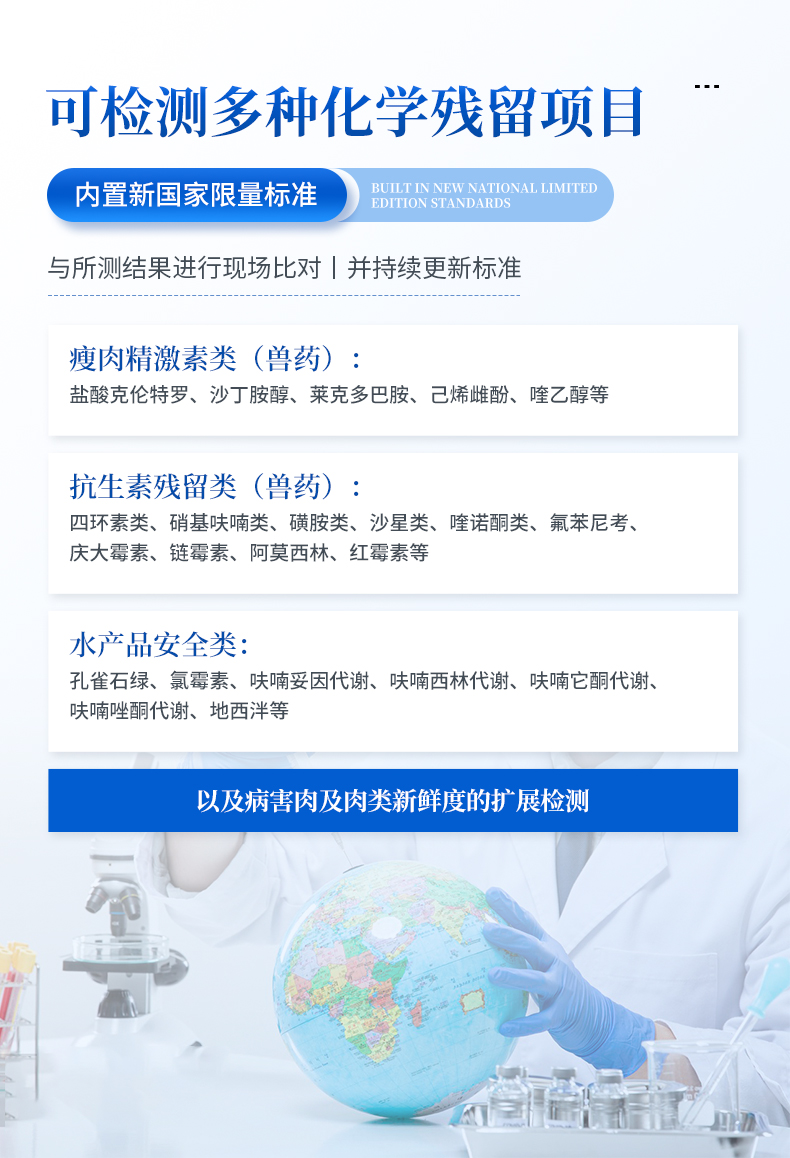 7、內置新國家限量標準,與所測結果進行現場比對,并持續更新標準。