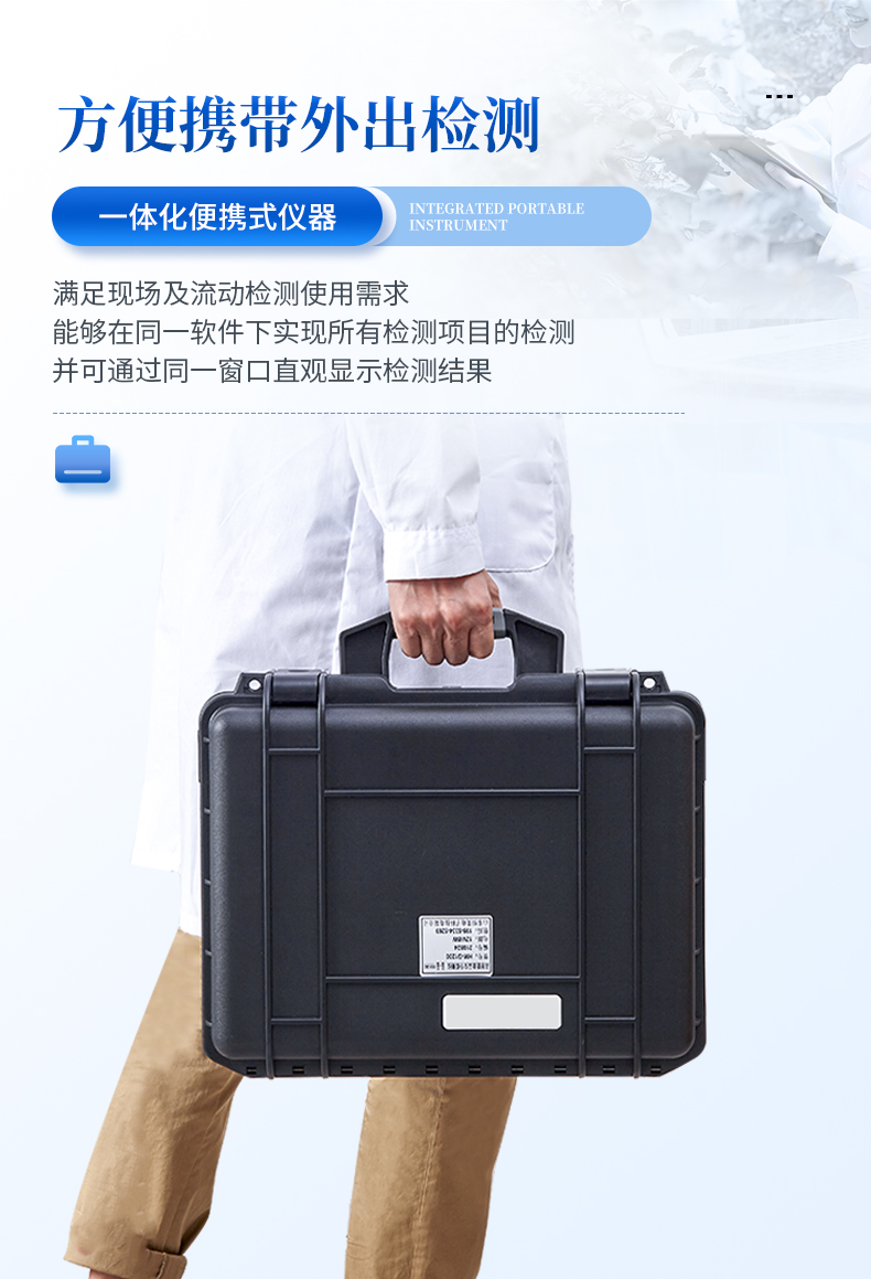 6、一體化便攜式快檢設備,滿足現場及流動檢測使用需求,能夠在同一軟件下實現所有檢測項目的檢測,并可通過同一窗口直觀顯示檢測結果。