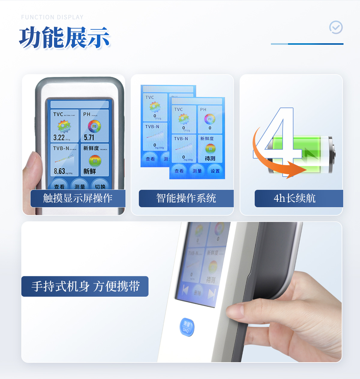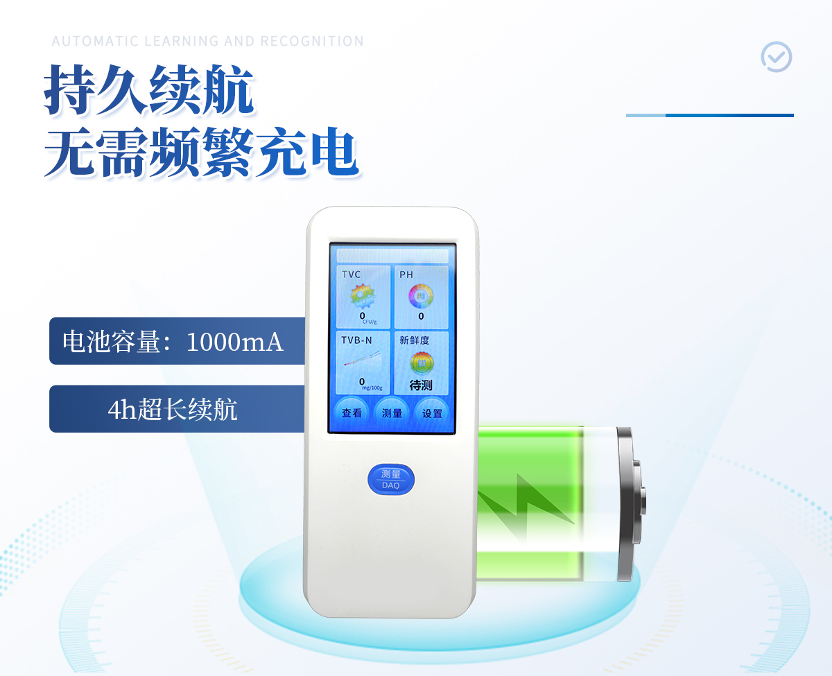 聯(lián)合中國農(nóng)業(yè)大學(xué)彭彥昆教授團(tuán)隊(duì)研發(fā)的掌上式生鮮肉新鮮度分析儀,可用于檢測生鮮肉的TVC、pH、TVB-N、新鮮度、L*、A*、B*等評價(jià)指標(biāo)。Palmarter具有體積小、便 于攜帶、性價(jià)比高等特點(diǎn),其應(yīng)用場景包括但不限于肉儲運(yùn)企業(yè)、肉品品質(zhì)監(jiān)管部門、飯店、超市、菜場、家庭等。